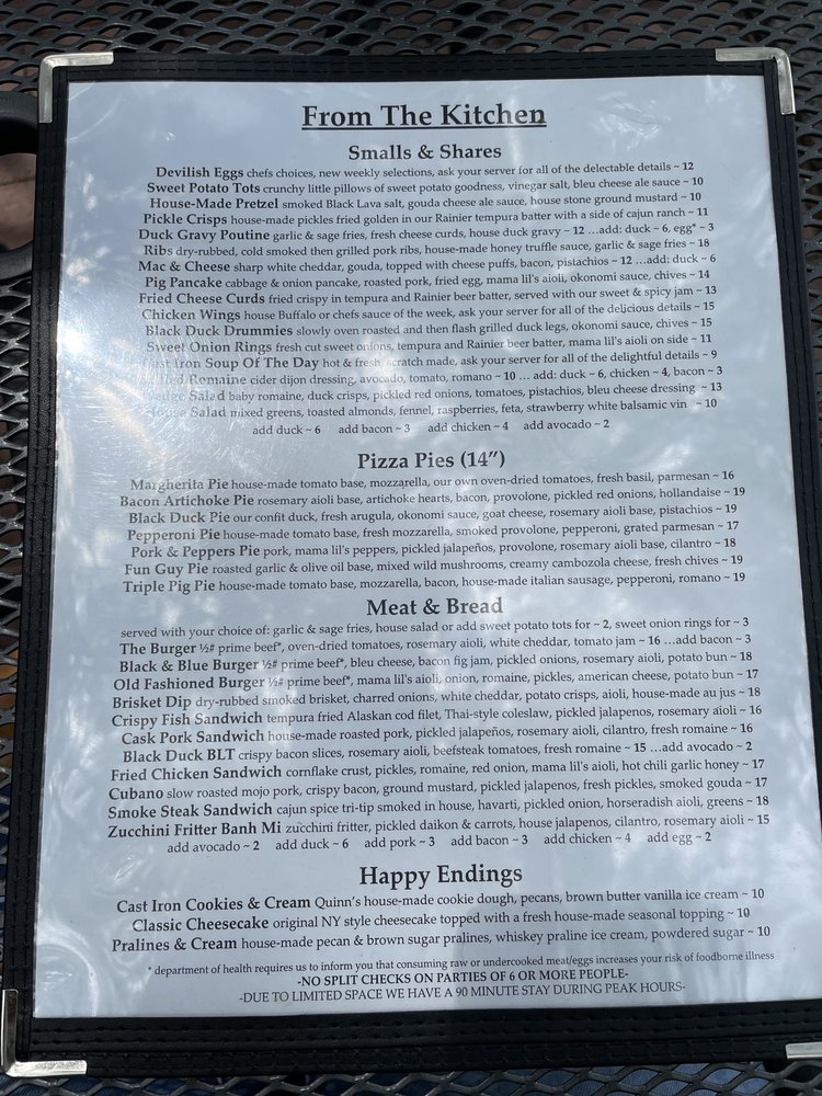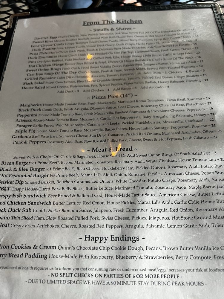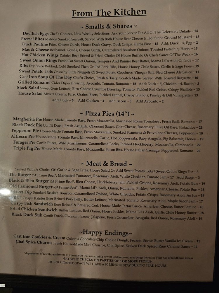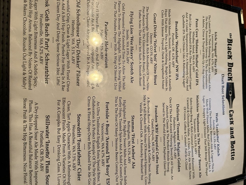 Introducing the menu at The Black Duck Cask and Bottle, located in Issaquah, WA, promises a diverse range of offerings. From delectable small bites like Fried Cheese Curds and Hot Chicken Wings to mouthwatering pizzas like the Pepperoni Pie and Alfresco Pie, there's something for everyone. The Meat & Bread section features enticing dishes such as The Bacon Burger and Brisket Dip. Customer reviews rave about the unique menu items, friendly service, and cozy atmosphere. Highlights include the duck poutine, juicy burgers, and a variety of craft beers on tap. Whether you're looking for a casual meal with friends or a special night out, The Black Duck Cask and Bottle is sure to leave a lasting impression.